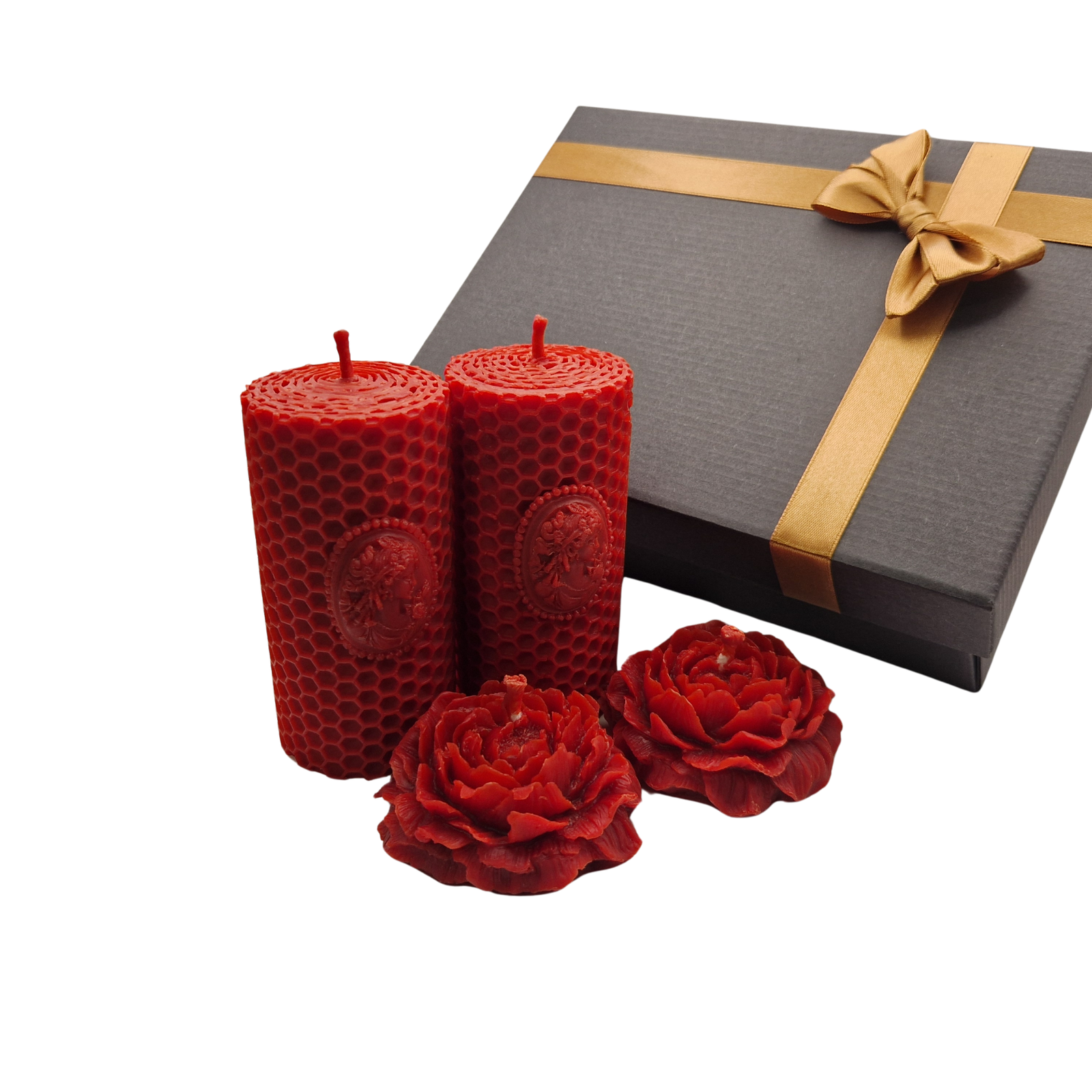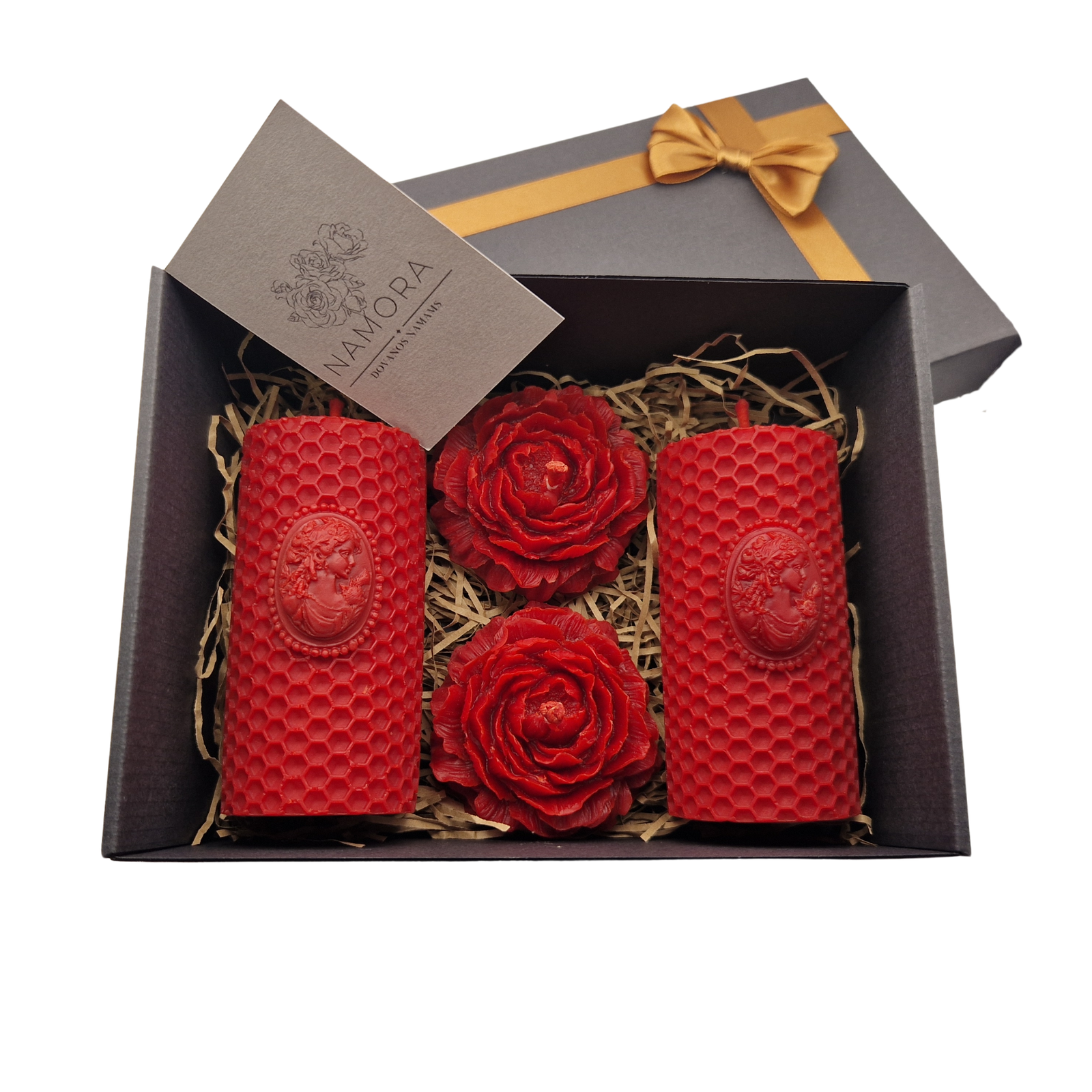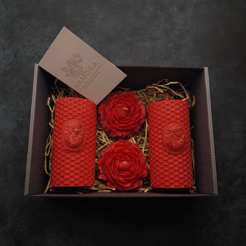 Raudonas bičių vaško žvakių dovanų rinkinys