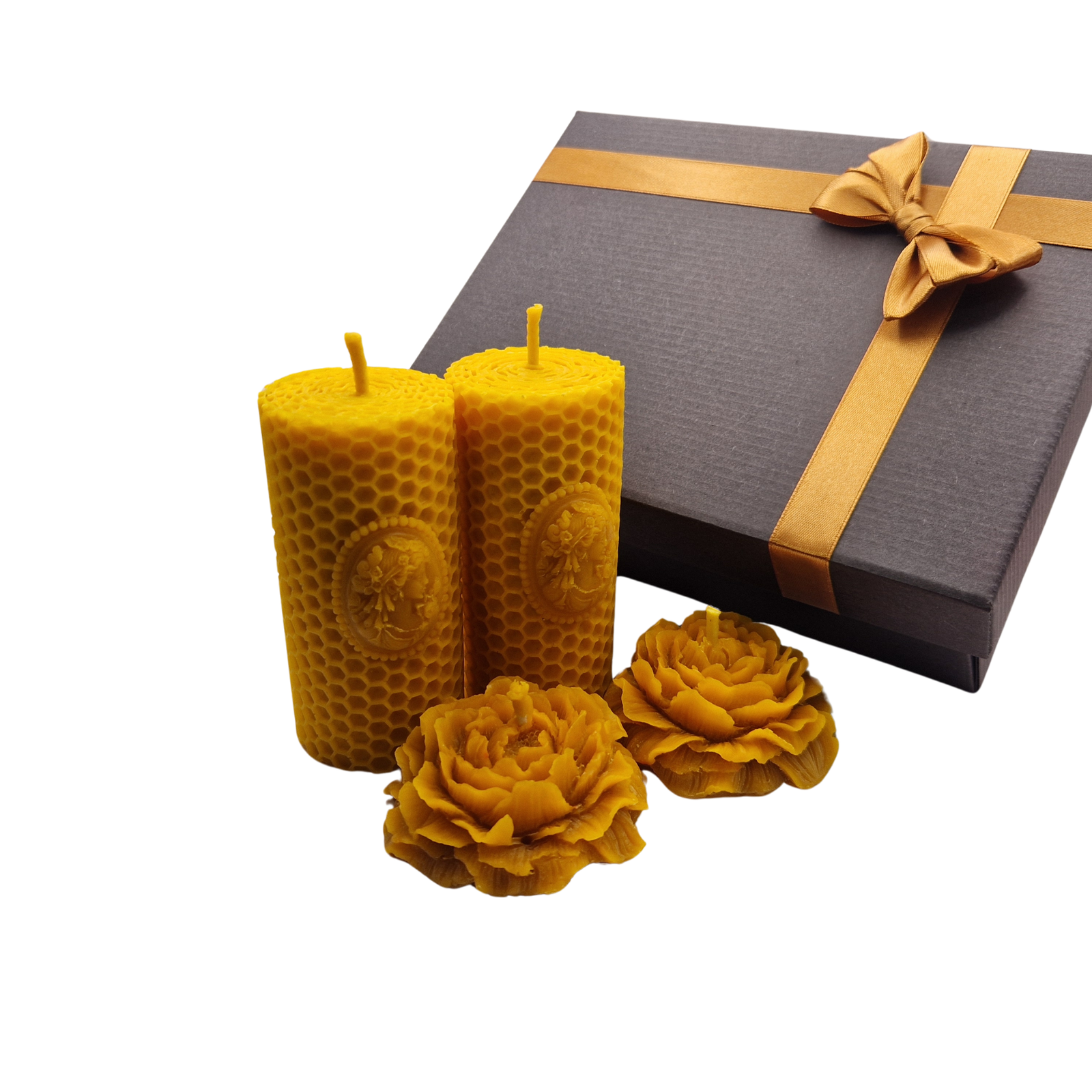 Natūralios spalvos bičių vaško žvakių dovanų rinkinys