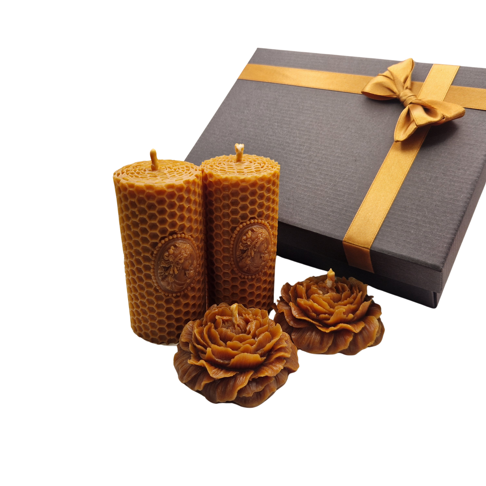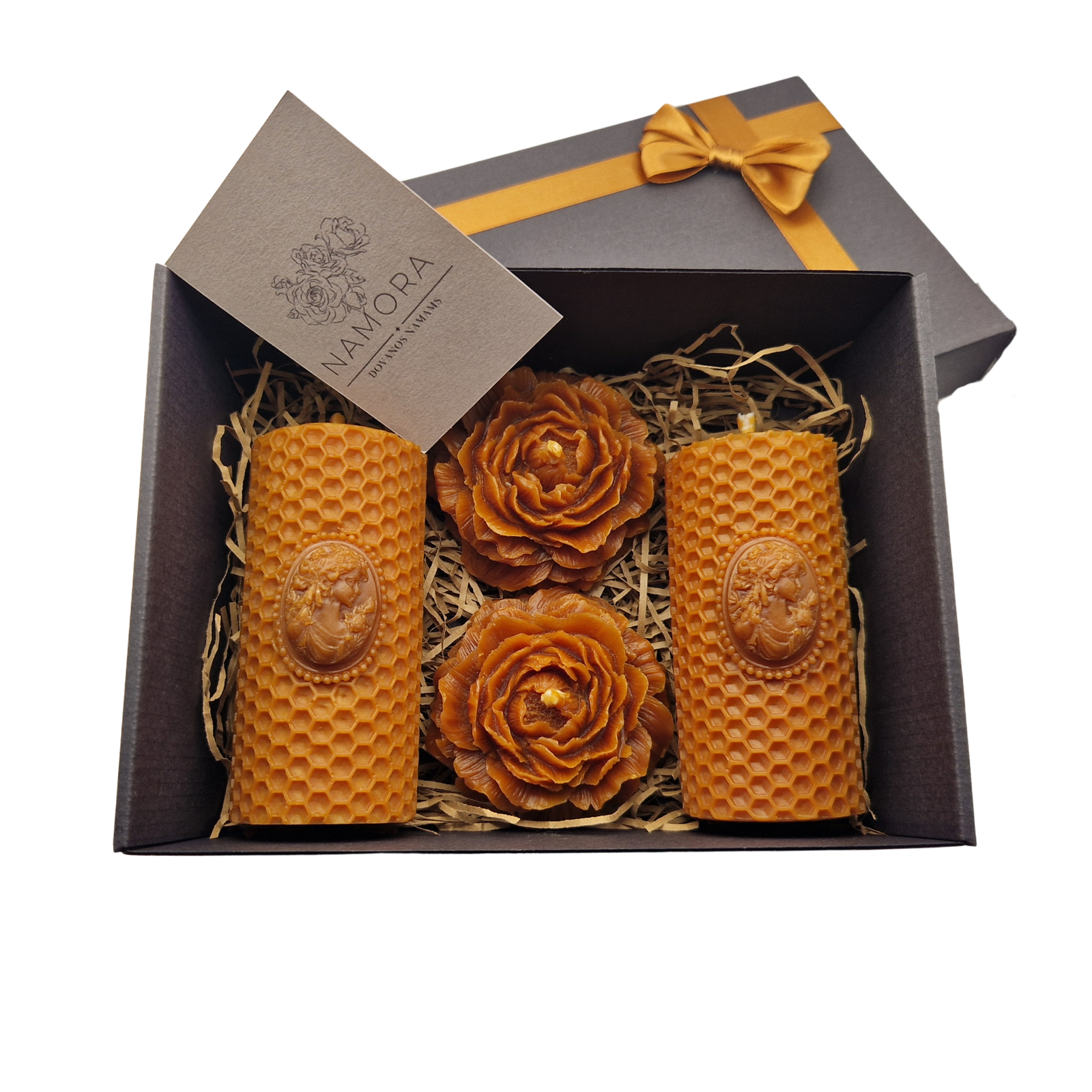 Rudas bičių vaško žvakių dovanų rinkinys