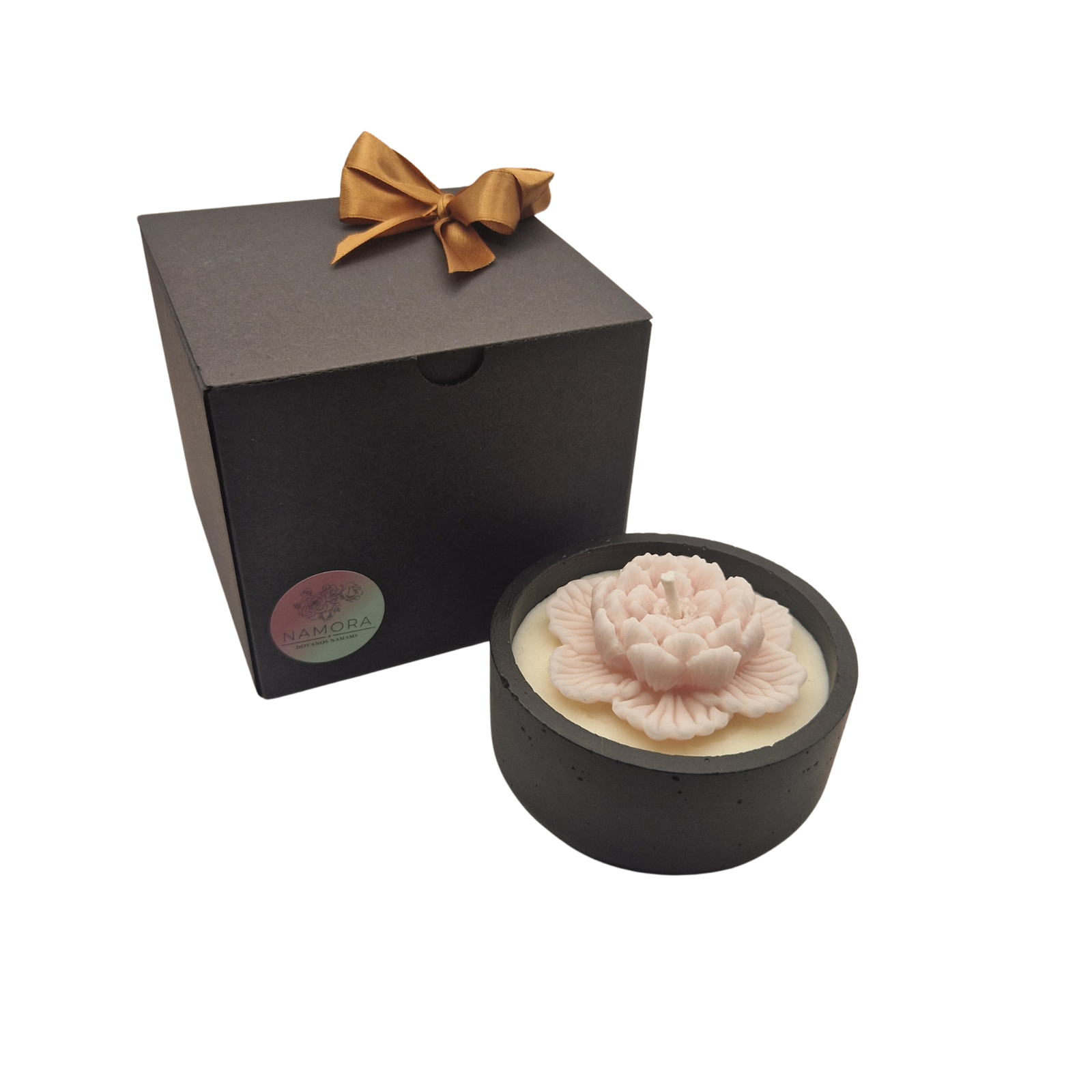 Sojų vaško žvakė „Cinitas” betoniname indelyje su dovanų dėžute