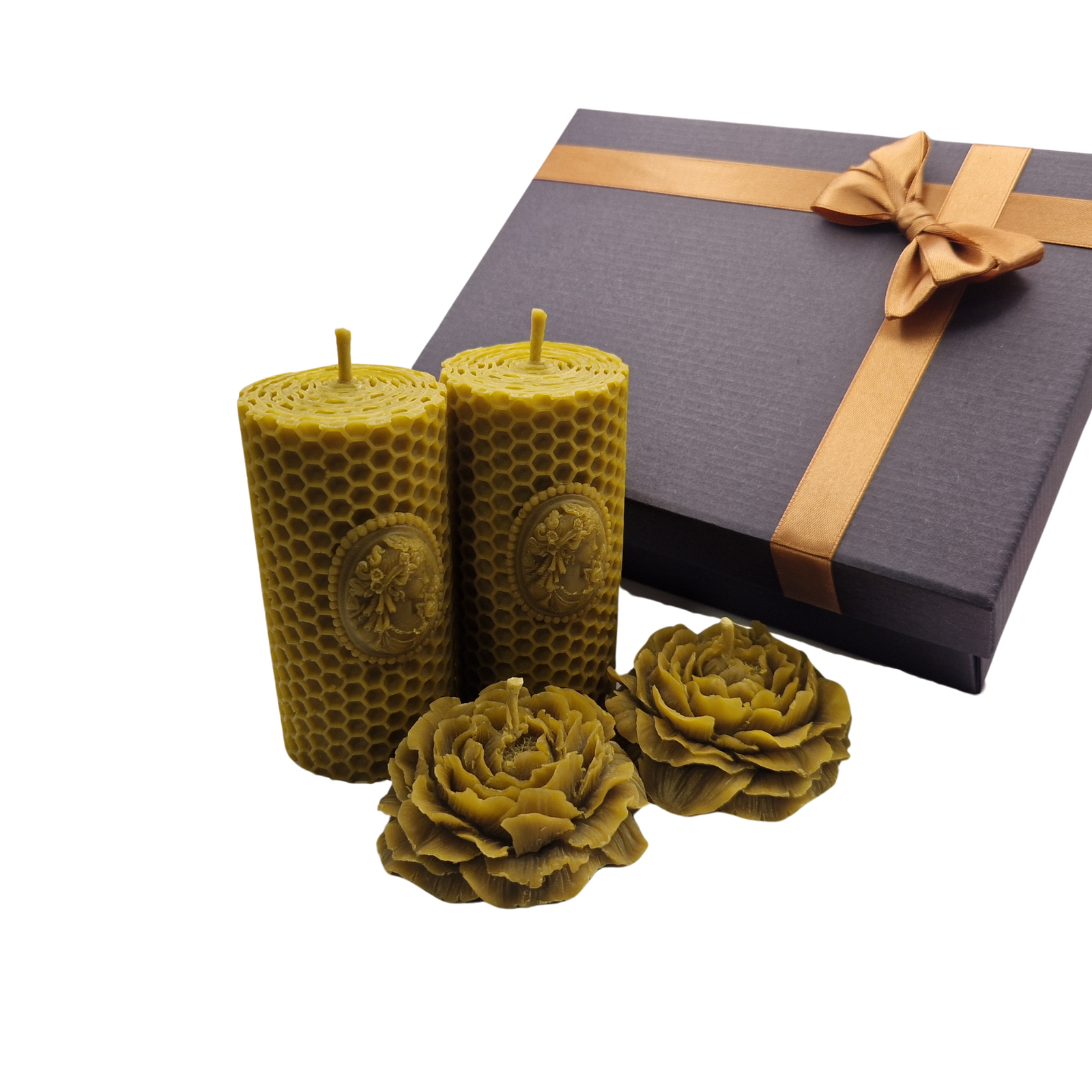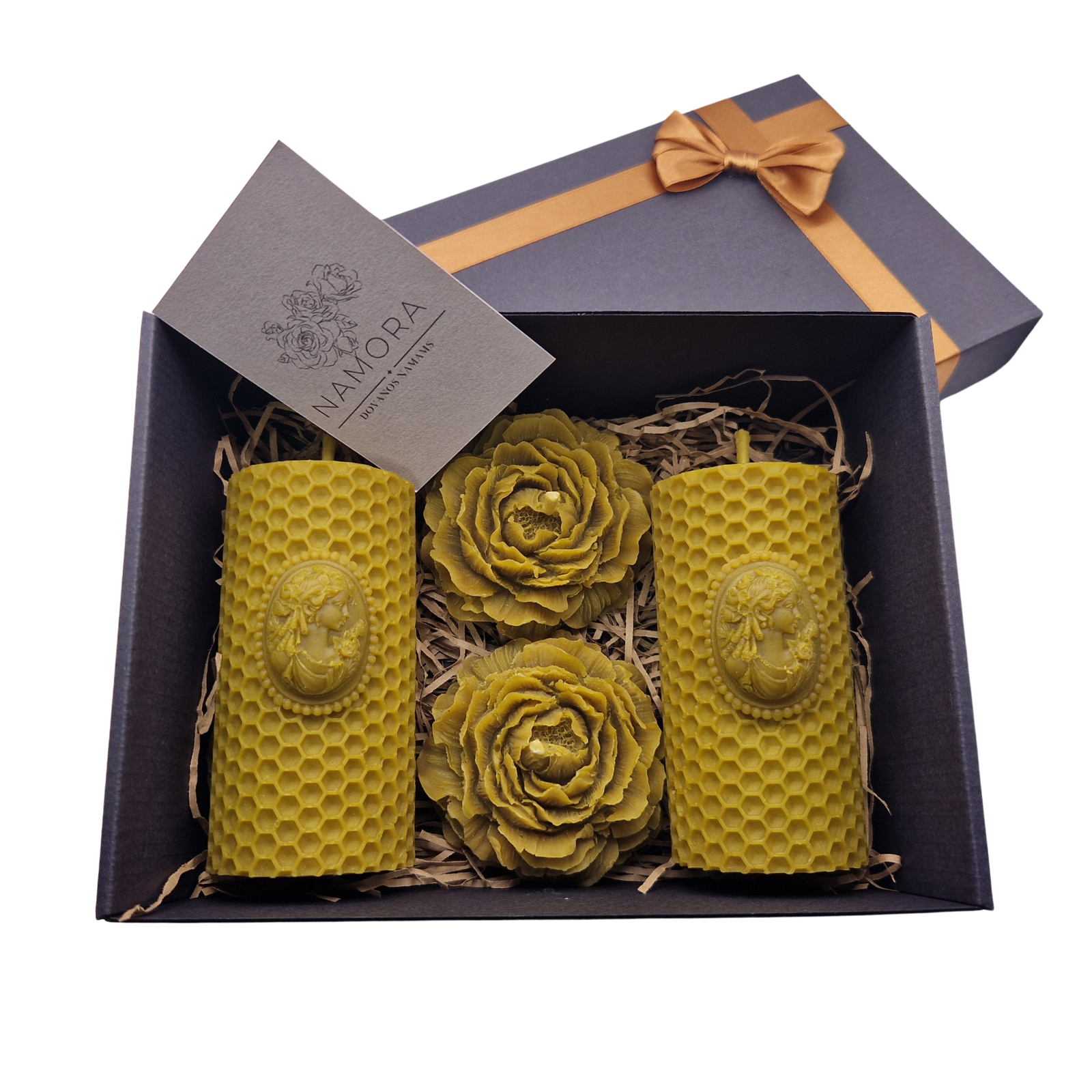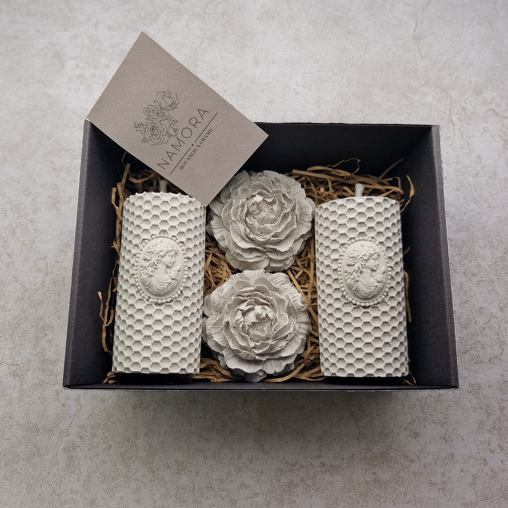 Žalias bičių vaško žvakių dovanų rinkinys